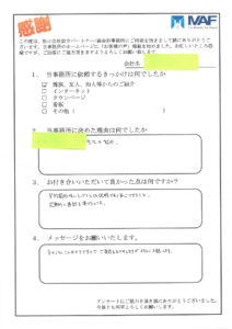 松山市内で法人を経営されているお客様(サービス業J社様)より、アンケートをいただきました。